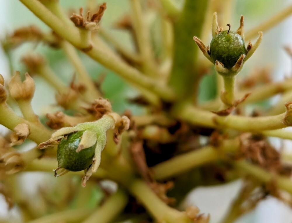 Dozens of fruit appear to have set. Here are a couple of the furthest along.