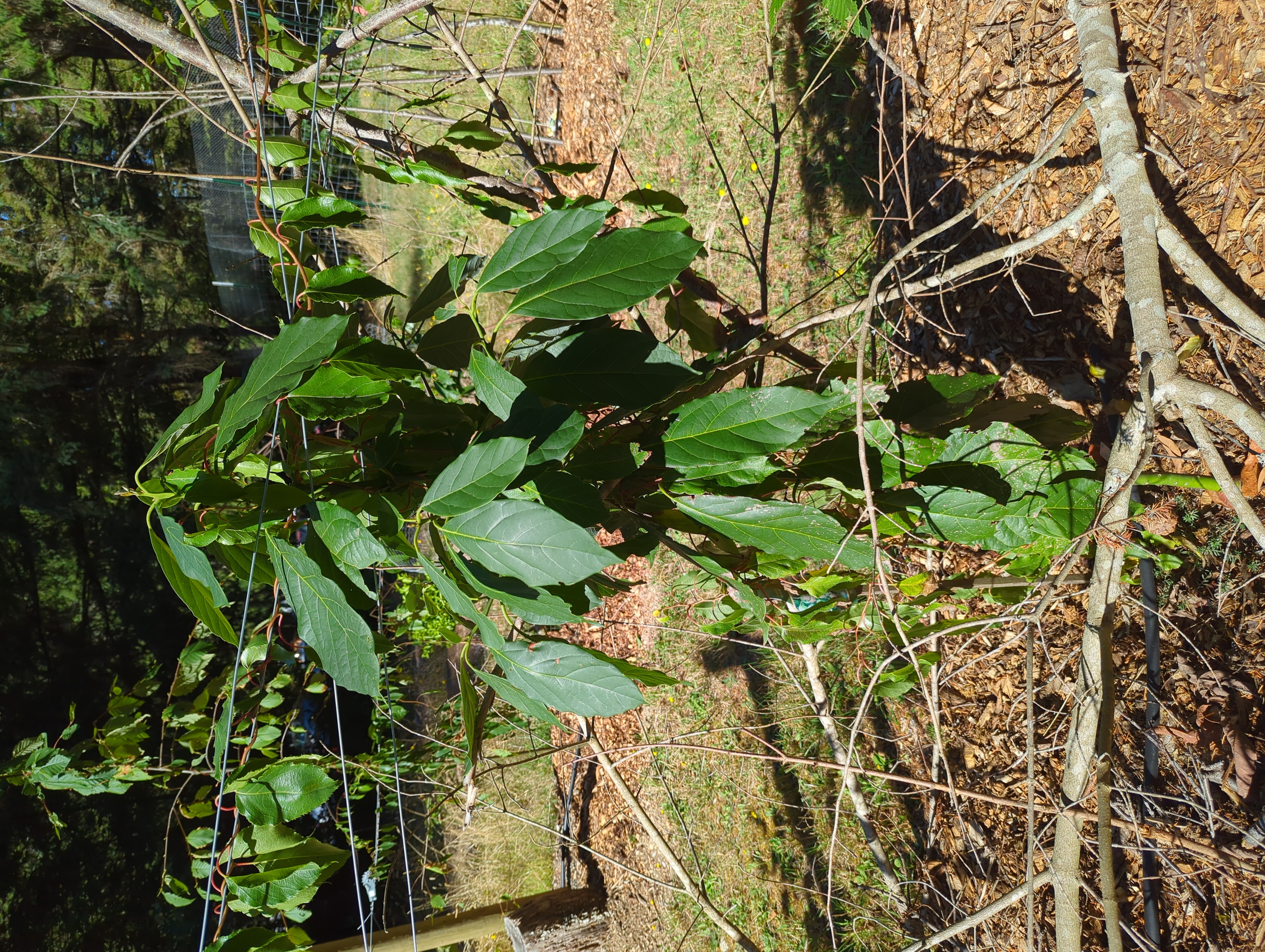 Growing tall and seems to be enjoying life. The Arctic kiwi I planted next to it has climbed up the avocado but both seem to be doing well. Only problem I see is that the leaves on the lower half of the plant still have brown speckles where something has damaged the leaf tissue.