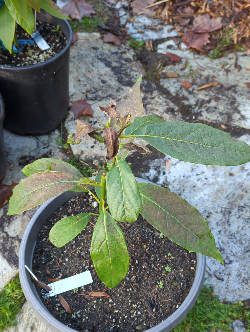Moderate to serious frost damage to leaves from 28°F, including hardened leaves, but stems and buds seem fine.