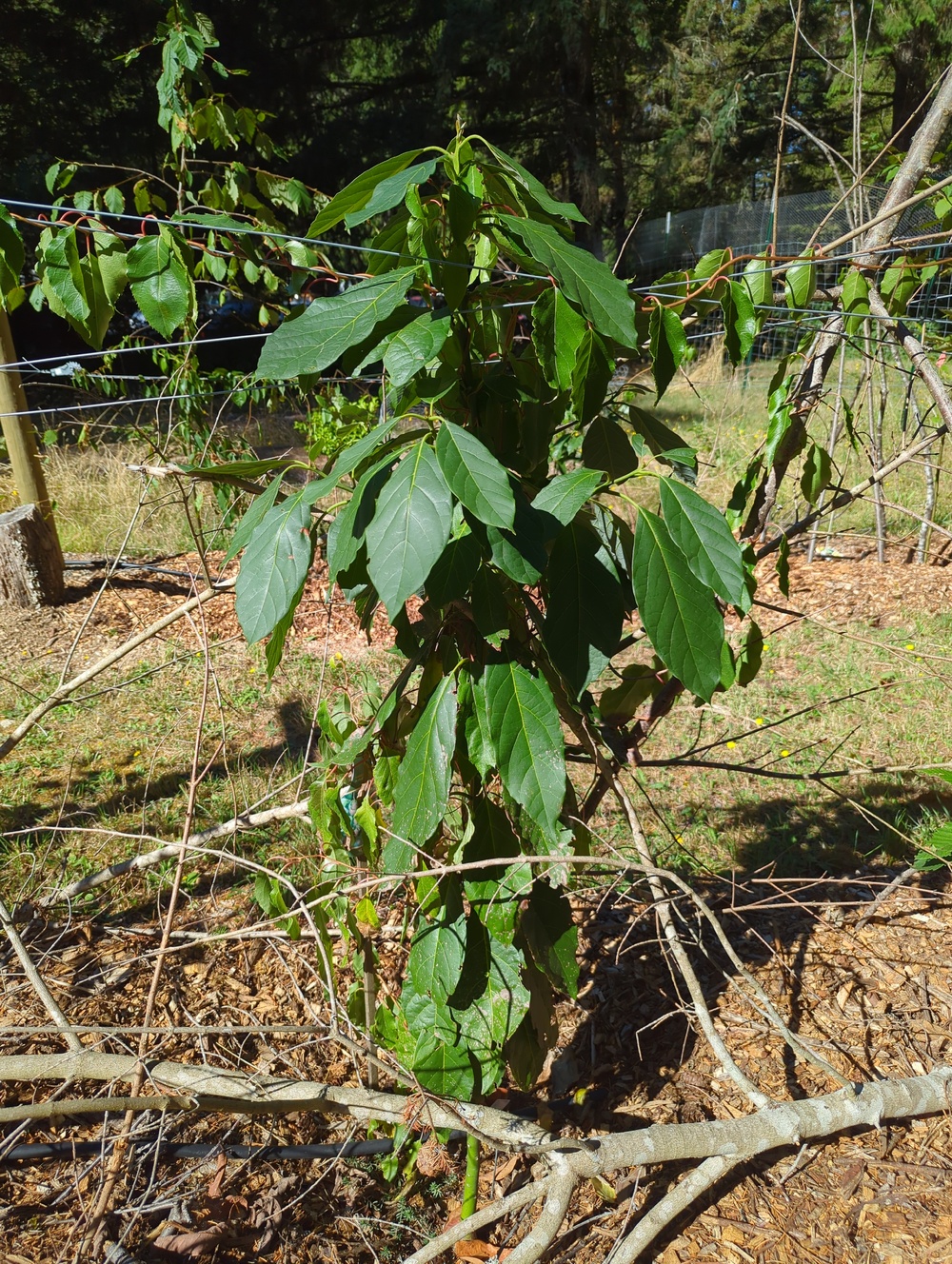 Growing tall and seems to be enjoying life. The Arctic kiwi I planted next to it has climbed up the avocado but both seem to be doing well. Only problem I see is that the leaves on the lower half of the plant still have brown speckles where something has damaged the leaf tissue.
